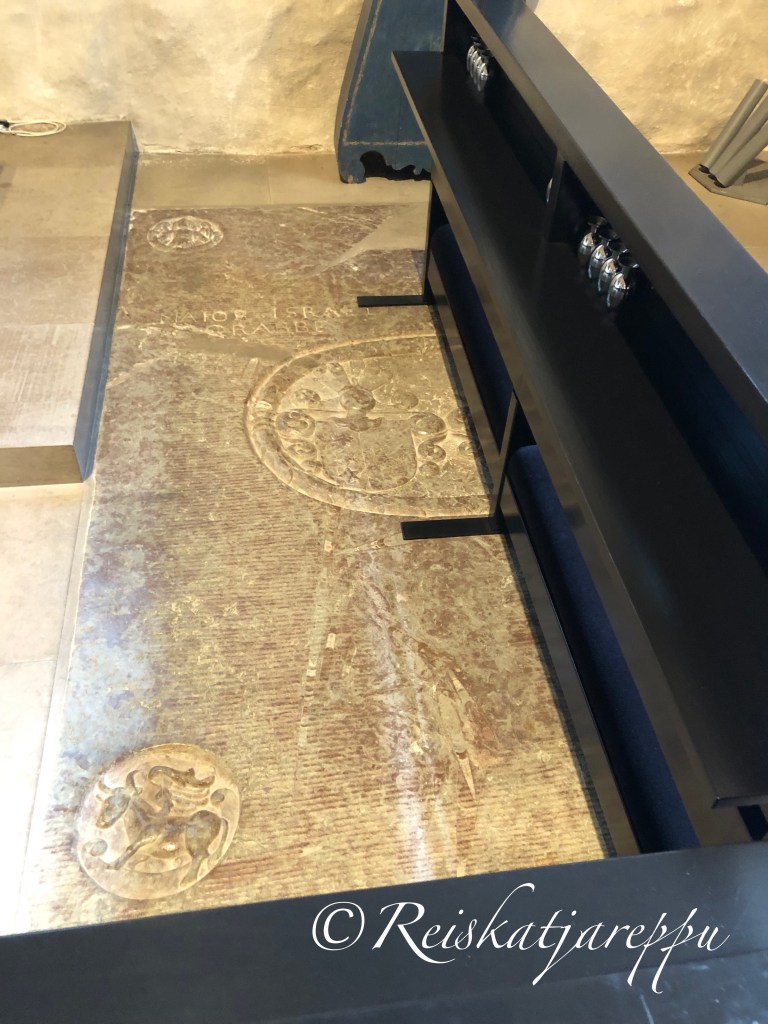 Kirkon huomattavin nähtävyys on kirkon sisääntuloaulassa näkyvät kaksi harmaakivistä hautamuistomerkkiä. Ne löydettiin vuoden 1968 kaivauksissa, ja hautamuistomerkkejä oli siihen asti käytetty kynnyskivinä. Niiden oletetaan olevan 1200-luvulta, ovat vanhimmat Suomesta löytyneet sekä säilyneet hautamuistomerkit.