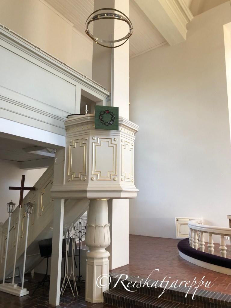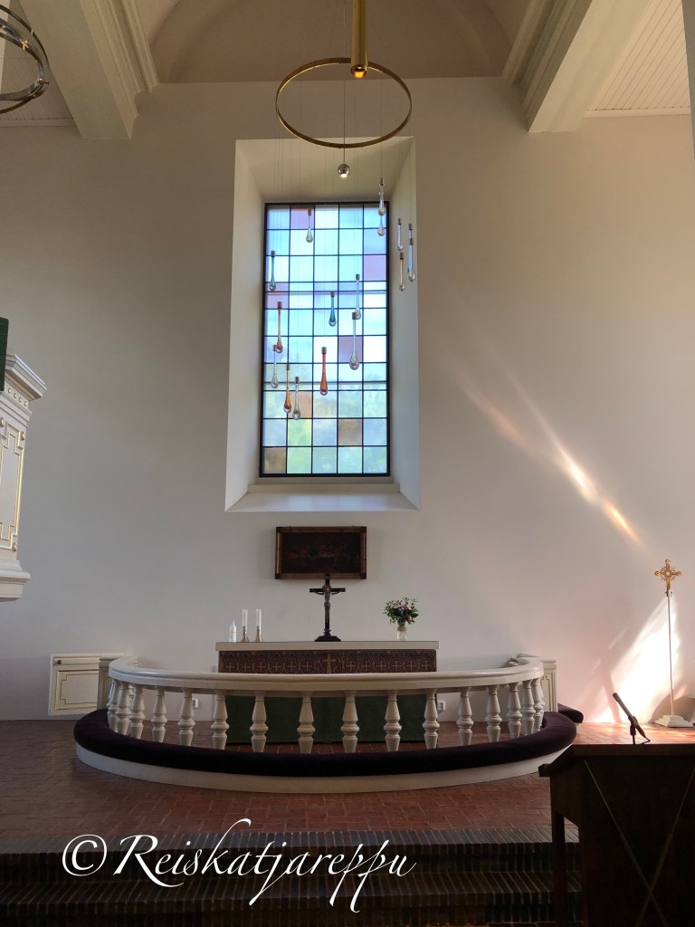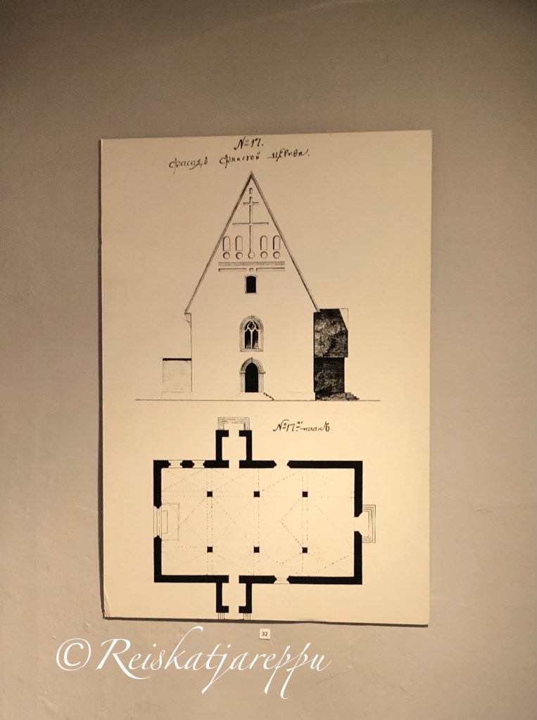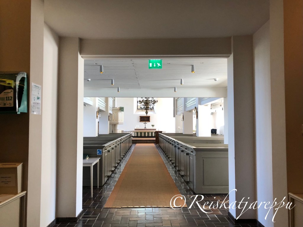 Päälle päin uljaan näköisen kirkon sisus paljasti mielenkiintoisen asian. Nämä komeat valkoisiksi maalatut ulkoseinät ovatkin keskiaikaisen kirkon seinät. Tällä paikalla ennen tämän kirkon uudistusta oli sijainnut keskiaikainen kirkko.