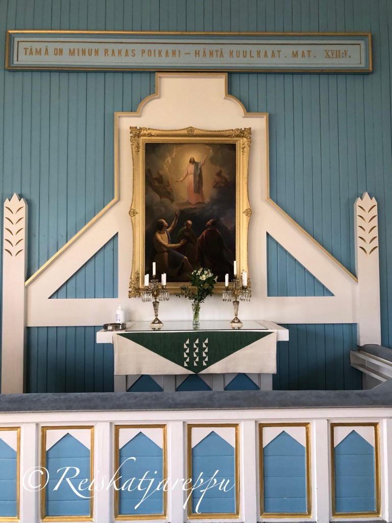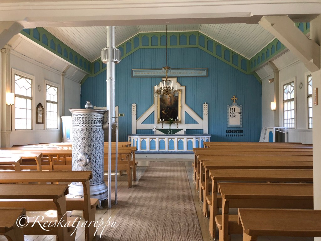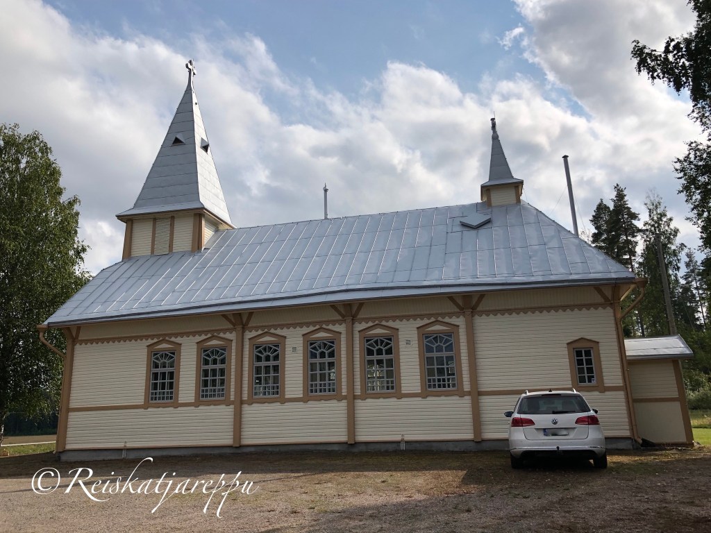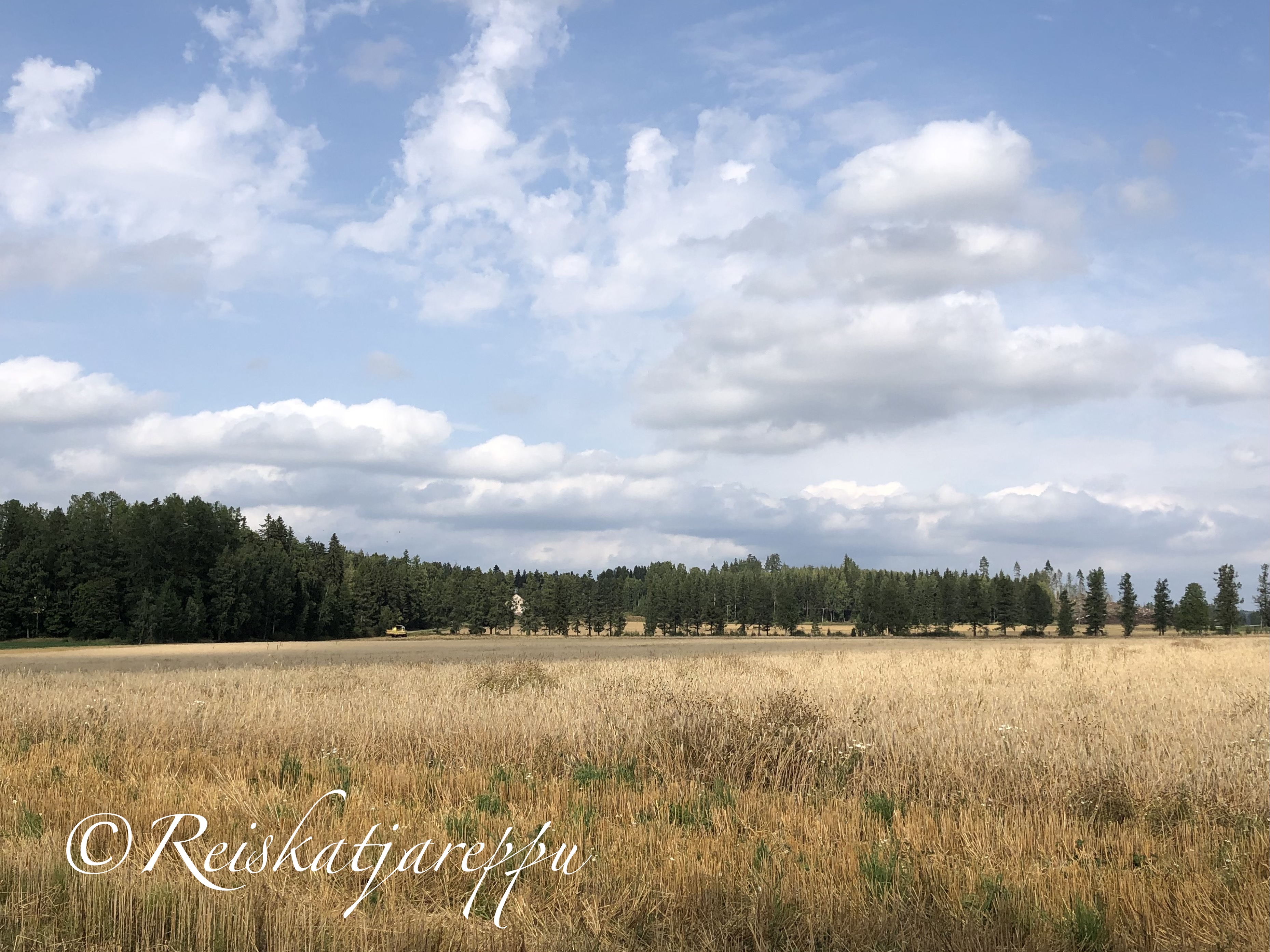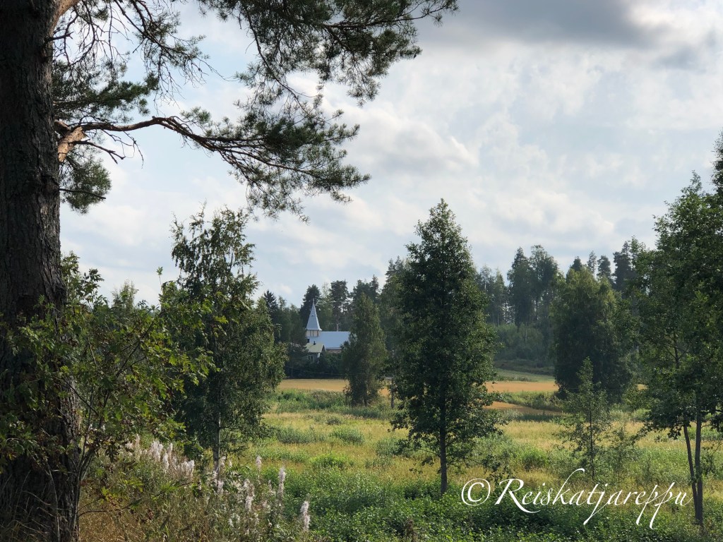 Aivan tien varresta voi nähdä tämän pienen sievän Mommilan kirkon. Kuten mekin näimme elokuun lopulla, tuulisena, mutta aurinkoisena päivänä. Loppukesän pellot loistivat kultaisina, kun kirkkobongarit saapuivat Mommilaan.