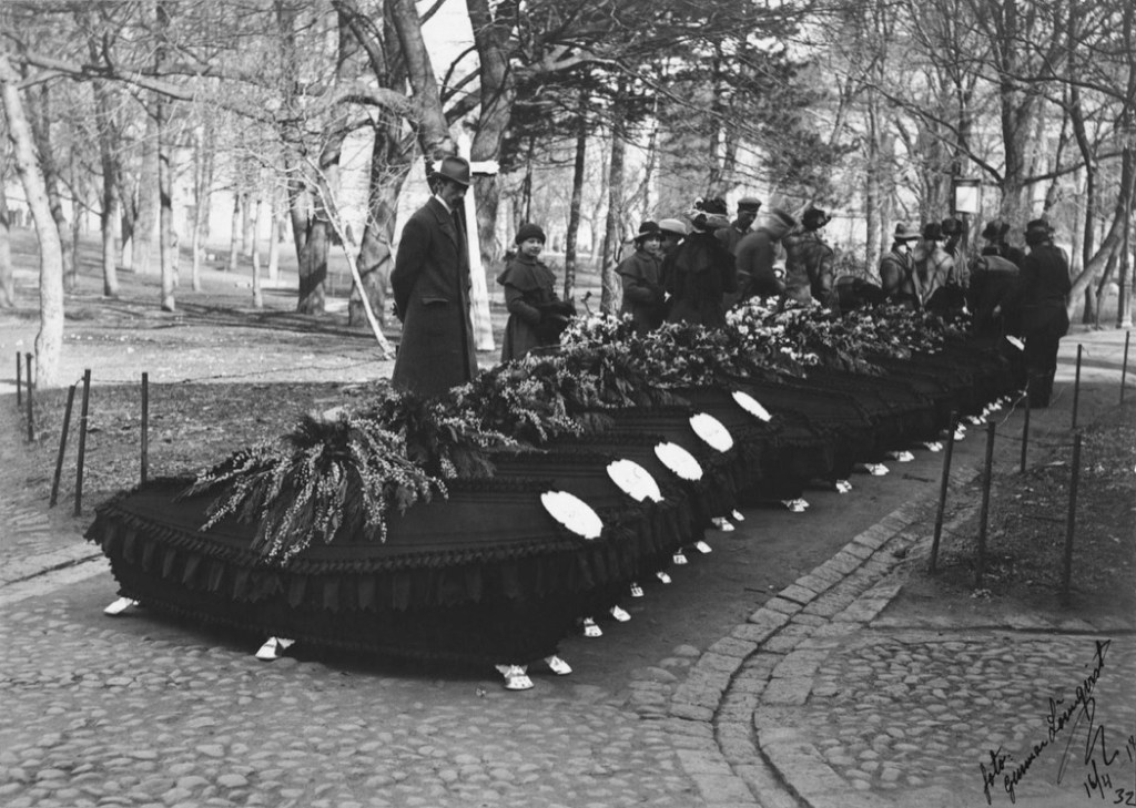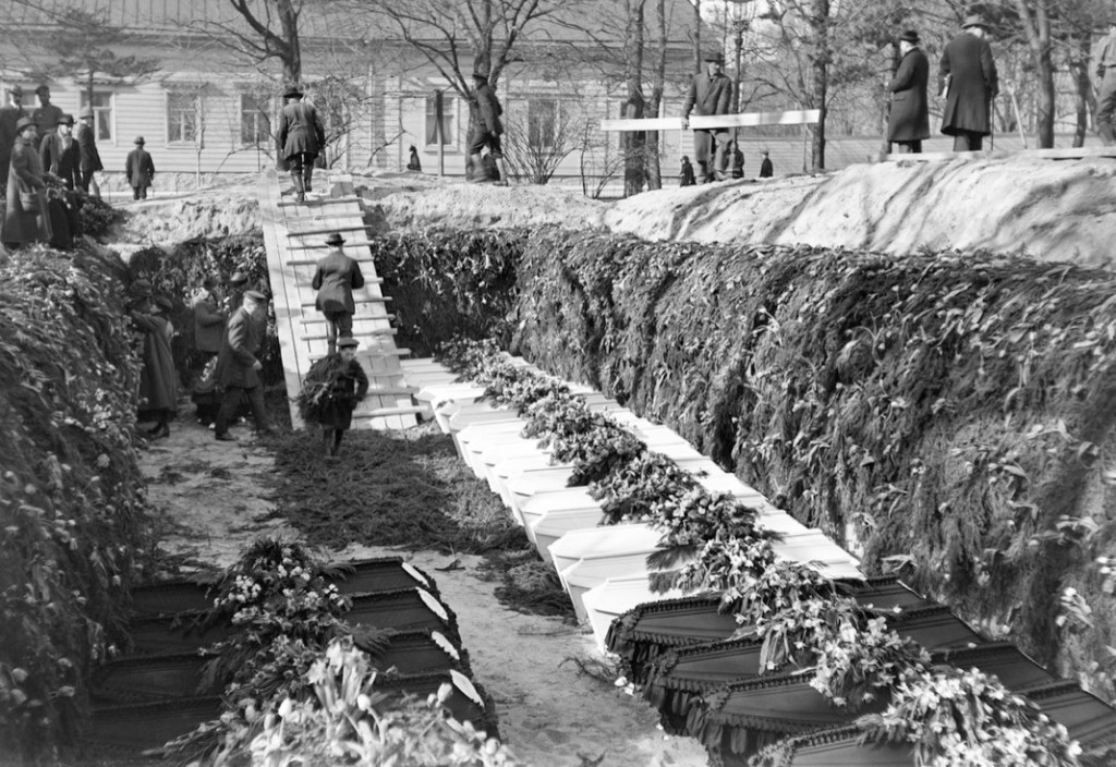 Muutama mielenkiintoinen vanha valokuva Vanhasta kirkkopuistosta. Jopa yllätyksellistä historiaa löytyi, kun uppouduin valokuviin Finnassa. Seuraavissa kuvissa näkyy Helsingin valtauksessa kaatuneiden valkokaartilaisten ja saksalaisten sotilaiden hautajaiset. Helsingin valtaus, joka oli Suomen sisällissodan taistelu, tapahtui 11.- 13. huhtikuuta 1918, jolloin Saksan Itämeren-divisioona valtasi punaisten hallussa olleen Helsingin. Saksalaisten apuna oli suomalaisia valkoisia. Valtauksessa kuoli noin 400 punaista, 60 saksalaista ja 20 valkoista. Taistelussa kaatuneet saksalaiset ja 16 valkoista haudattiin Vanhaan kirkkopuistoon. Jäljelle on jäänyt kuvia hautajaisista, jotka olivat suuret ja suuret olivat joukkohaudatkin.