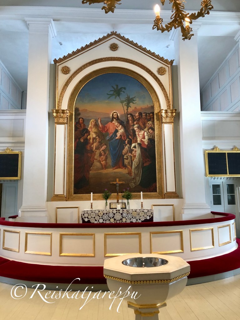 Alttaritaulun paikalla oli aluksi Engelin suunnittelema puinen kullattu risti taivaansinisellä pohjalla mutta paikalle saatiin alttaritaulu, joka on hovimaalari Robert Wilhelm Ekmanin ”Jeesus siunaa lapsia”. Taulu oli alun perin tarkoitettu tuomiokirkon alttaritauluksi, mutta keisari Nikolai I lahjoitti tuomiokirkkoon ”Kristuksen ristiltäoton”. Alttaritaulu oli Nikolain mukaan liian heleä Tuomiokirkkoon, joten synkempi taulu päätyi tuomiokirkkoon.