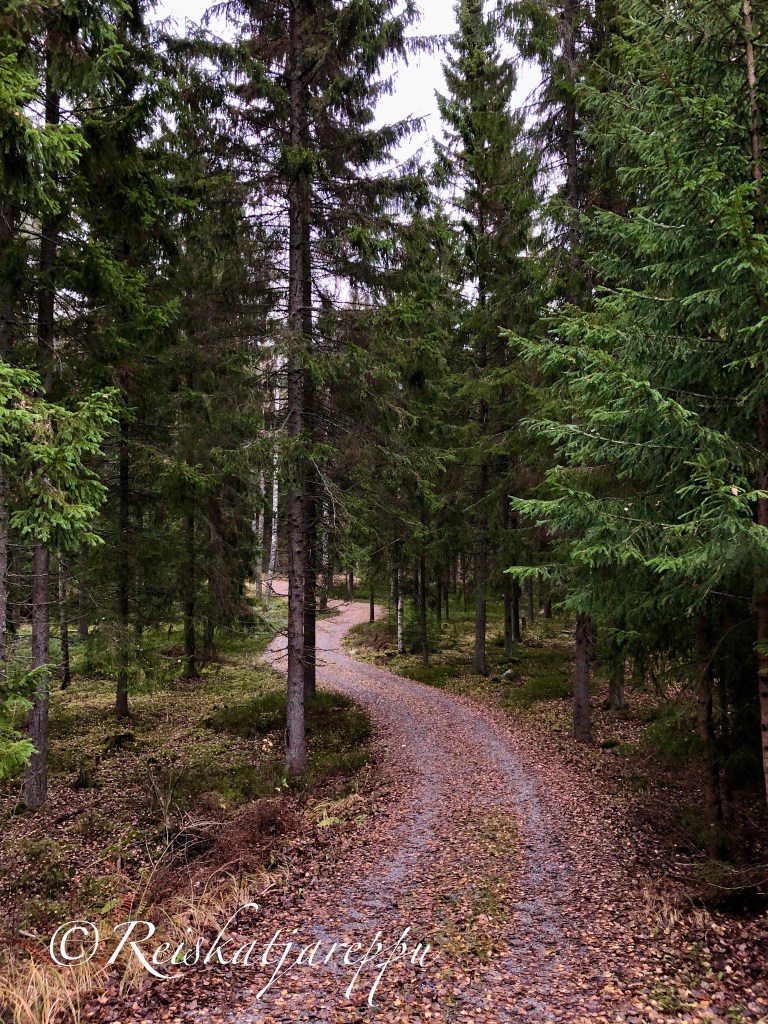 Matka tuntui pitkältä ajellessamme Söderlandintietä, kunnes tuli P-paikka ja infotaulu. Viitta opasti metsään ja kävellessämme metsätietä pitkin vihdoin pääsimme paikalla.