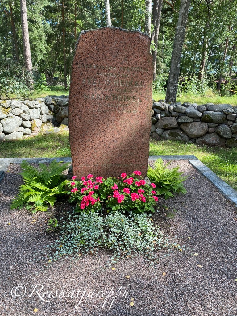 Kivimuurin sisällä kirkon pihalla on ulkomuseon perustajan Axel Olai Heikelin ja hänen vaimonsa hauta.