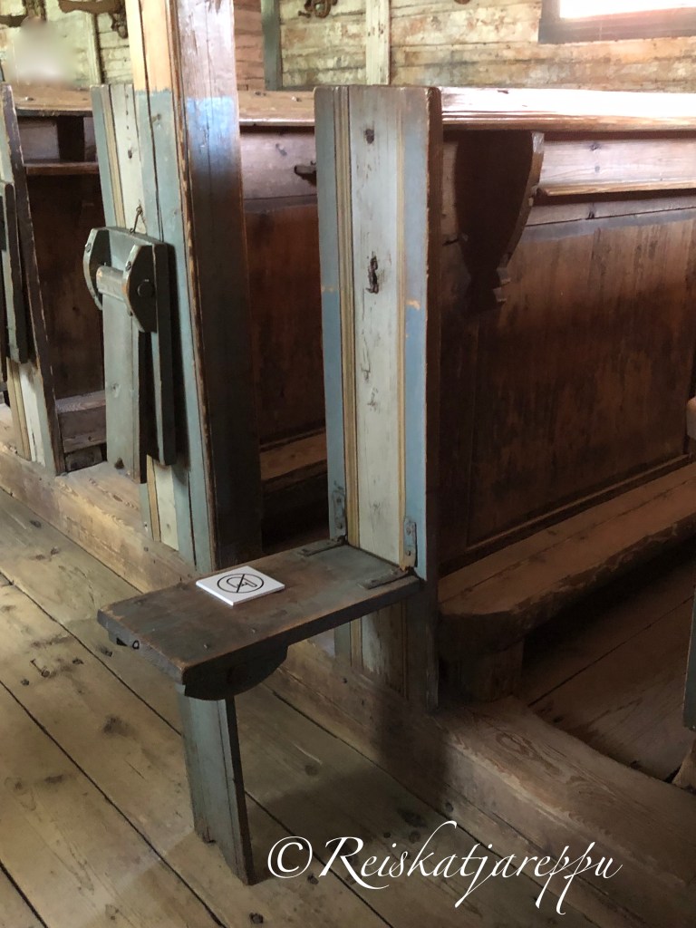 Etuimmaisissa penkkiriveissä ovat ovet, erottamassa etteivät vahingossakaan, muut kuin säätyläiset päässet istumaan lähemmäksi alttaria. Vähempiarvoisen väestön penkkirivistöstä ovet puuttuivat ja kaikista kauaimpana istuivat kaikista vähäarvoisin väki, pelkillä penkillä.