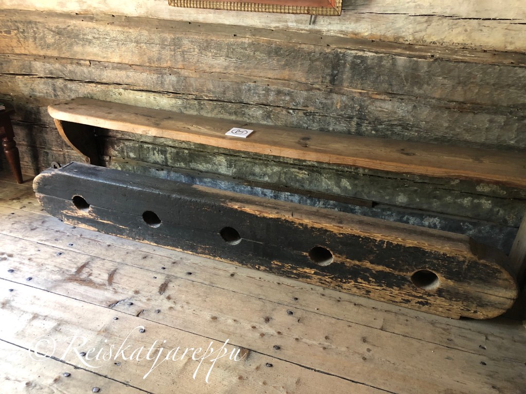 Eteisessä on jalkapuu. Jalkapuu oli häpeärangaistusta varten ja rangaistus kesti kirkonmenojen ajan. Ei saanut kiroilla, ei tapella eikä olla humalassa, sillä siitä seurasi rangaistus. Häpeällistä oli istua ja olla ihmisten katseltavana.