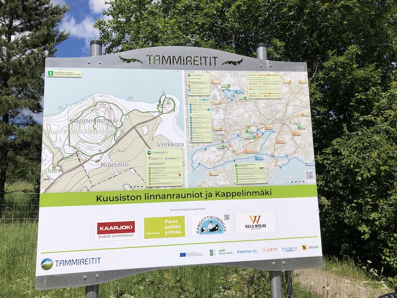 Saavuttaessa Kuusiston Linnanraunioiden p-paikalle, matkan voi taittaa polkua pitkin läpi peltojen. Hyvä tuuri jos sattuu, voi törmätä lampaisiin. Polku johdattaa kohti Kuusiston kartanoa tai mahdollisuus on oikean kohdan löytyessä kiertää linnanraunioille Kappelimäen kautta.