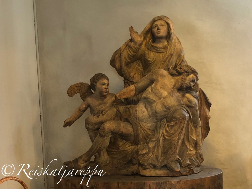 Apostoli Johanneksesta kuvaava puuveistos (vas. kuva) on 1600-luvulta. Se on Stadiuksen suvun lahjoittama 1959.