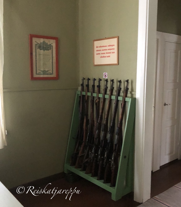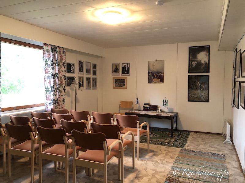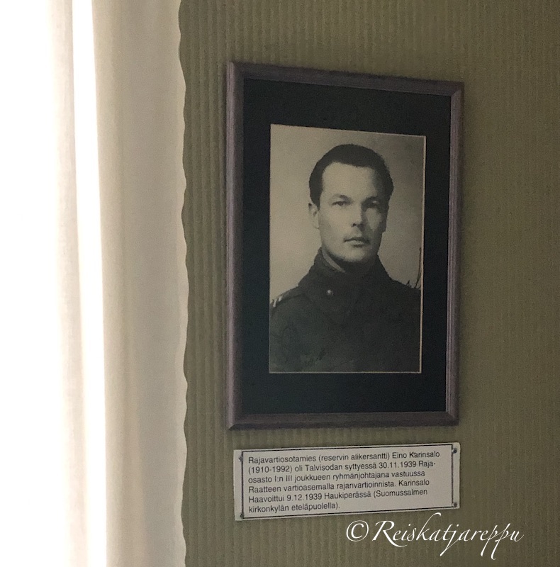 Pihapiirin rivitalossa on paikka hiljentymiselle ja sisällä voi tutustua seinillä olevien valokuvien perusteella elämään rajavartiossa ja sotaan kuvien mukana.