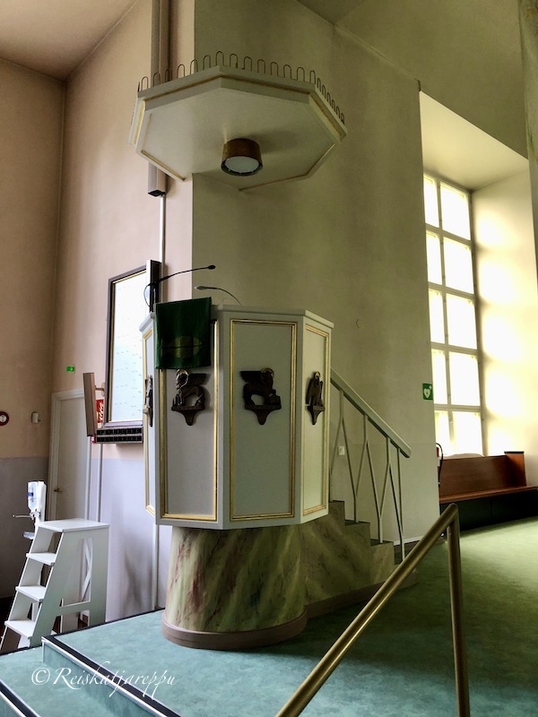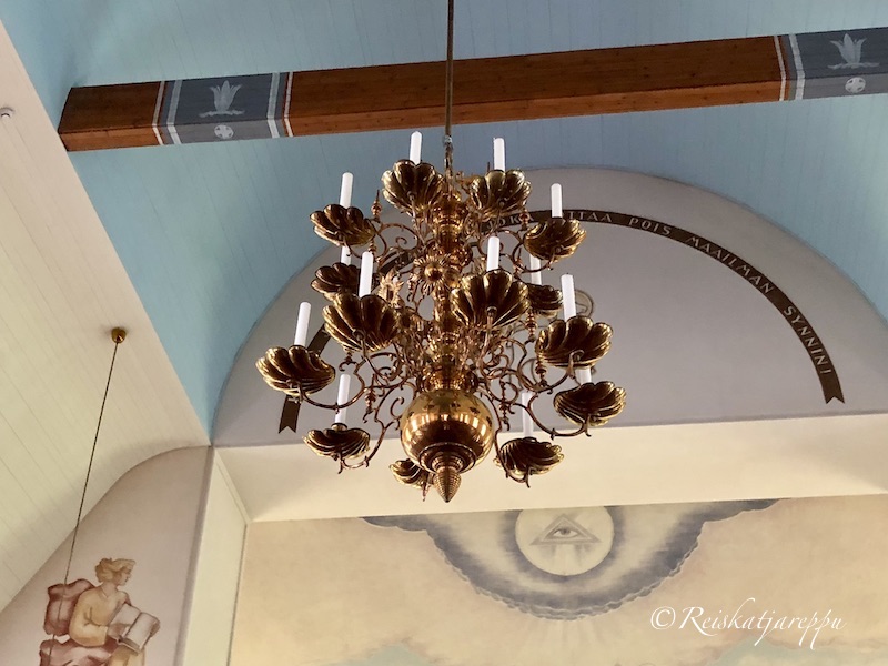 Katosta roikkuva kynttiläkruunu on kirkkoherra Zacharias Forbuksen lahjoittama vaimonsa Claran muistoksi.