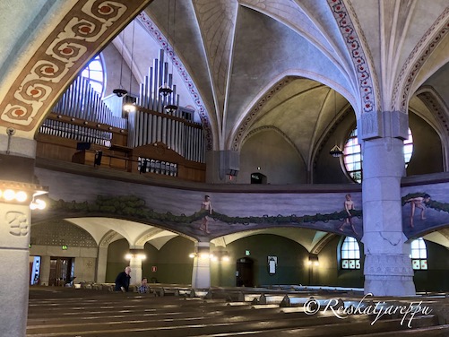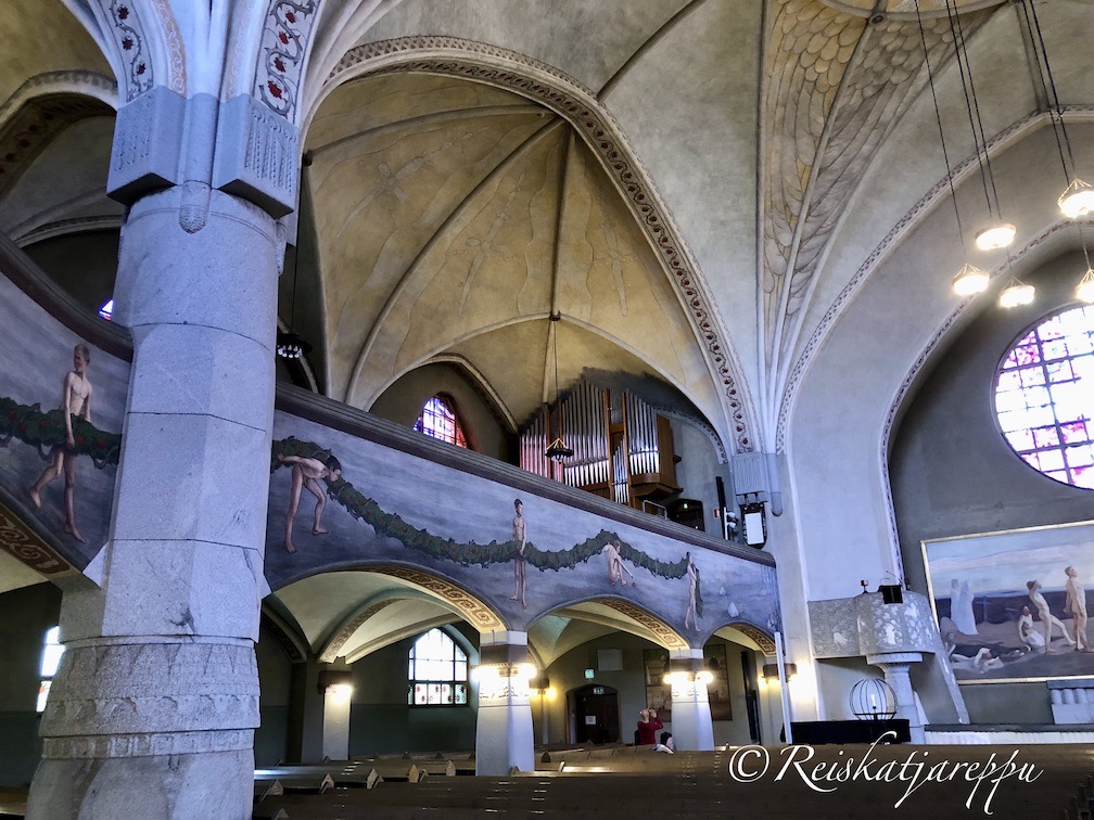 Lehterille kannattaa nousta ihailemaan kirkkoa ja katselemaan tarkemmin holvien sekä kirkkosalin kauneutta.