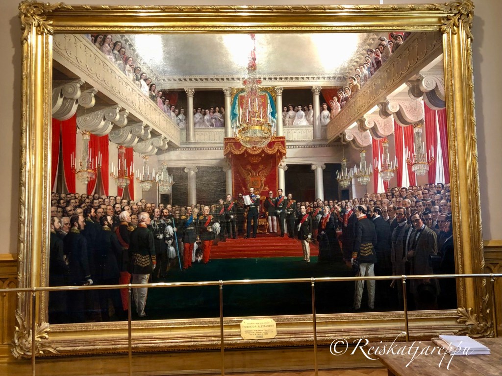 Taulun on maalannut: Robert Wilhelm Ekman: Keisari Aleksanteri julistaa vuoden 1863 säätyvaltiopäivät avatuiksi.
