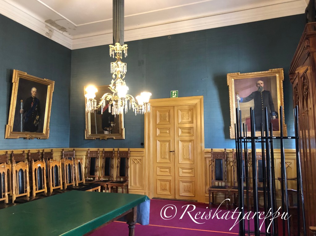 Ritarihuonesalista on käynti johtokunnan huoneeseen, joka seinillä komeilevat aatelisherroja, jotka ovat olleet säätyvaltiopäivien maamarsalkkoja.