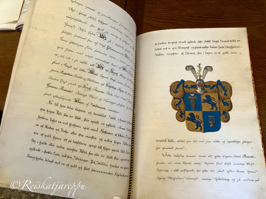 Tutustuimme Ritarihuoneen kirjastoon jossa saimme tutustua vanhoihin asiakirjoihin ja vaakunakirjeisiin eli asiakirjoihin, joilla henkilöt aateloitiin. 1500-luvulta lähtien niiden merkitys oli entistä suurempi aateluuden siirtyessä sukupolvelta toiselle. 1600-luvulla perustettuihin ritarihuoneisiin vaakunakirje oli tae päästä niiden jäseniksi. Näillä vaakunakirjeillä pystyttiin todistamaan kuuluminen aateliin. Uusien sukujen introdusointi ritarihuoneella oli tärkeä toimenpide, jonka yhteydessä vaakunakirjeiden aitous tarkistettiin ja vahvistettiin. Alkuperäinen vaakunakirje jäi säilytettäväksi ritarihuoneelle.