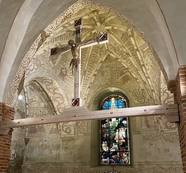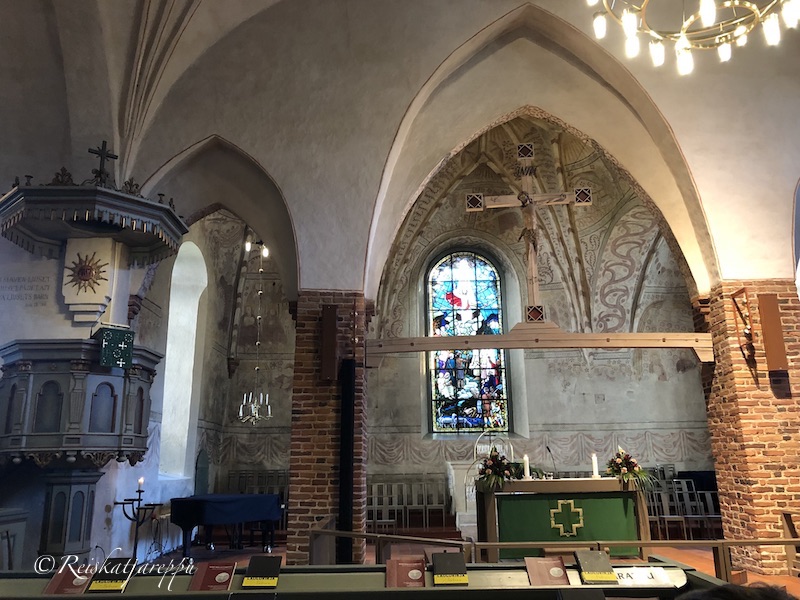 Alttarin yläpuolella oleva triumfikrusifiksi on valmistettu 1500-luvulta. Krusifiksi palautettiin Kansallismuseosta kirkkoon vuonna 1982, jolloin se kiinnitettiin uuteen ristinpuuhun.