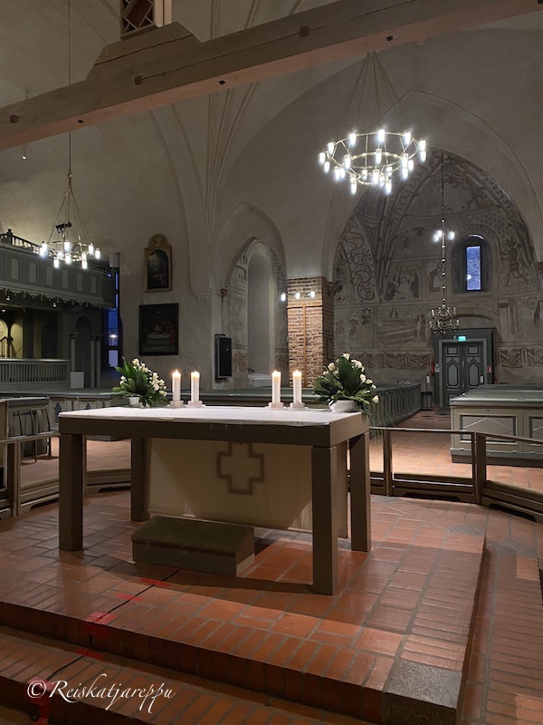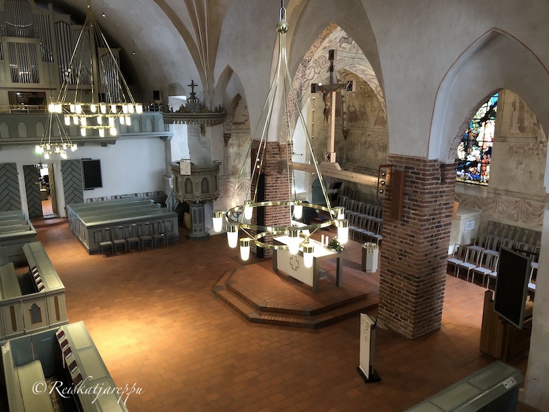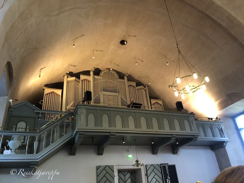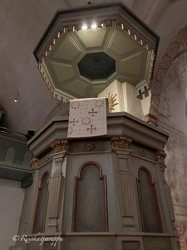 Kuva oikea Espoon tuomiokirkko sisäkuva urkuparvi ja saarnatuoli.