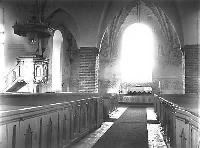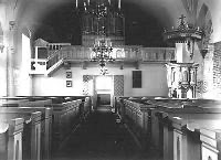 Kuva vasen Espoon tuomiokirkko sisäkuvat 1933, alttari ja saarnatuoli.