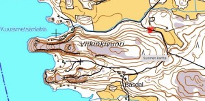 Karttaan merkitsin P-paikan. Ylhäältä tulee Viikinkitie.